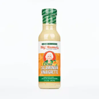 Our flagship product, Big Mama’s Calamondin Vinaigrette, is made with real calamondin citrus—naturally bright, tangy, and perfectly balanced. It’s vegan, gluten-free, dairy-free, and contains no preservatives, artificial ingredients, or seed oils, delivering bold, clean-label flavor without compromise.