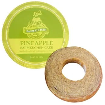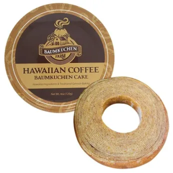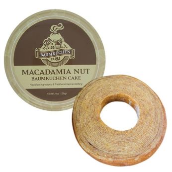 The other brand we own and produce is Baumkuchen Farm. Baumkuchen is a very unique cake/bread cooked on a stick. layer after layer is added and at the end you get a ring which resembles of a tree ring. Baumkuchen Farm has created some very special Hawaiian related flavors like Macadamia Nut, Hawaiian Coffee, Pineapple and Mango. They are packed in beautiful tin cans and are great gifts. At this year's fancy food show we introduce a completely new product packed in a bag for the countertop snack business market. This product is a Lilikoi/Passion Fruit flavor.