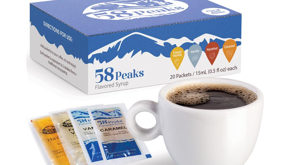 We specialize in single-serve, tear-and-pour flavor packets; it's the modern, mess-free alternative to bulky bottles. These shelf-stable packets allow anyone to enjoy café-style drinks at home, at work, on the road, or out on the trail. With flavors like Vanilla, French Vanilla, Caramel, and Hazelnut, along with Sugar-Free options, 58Peaks brings convenience and consistency to consumers, retailers, and foodservice operators alike.