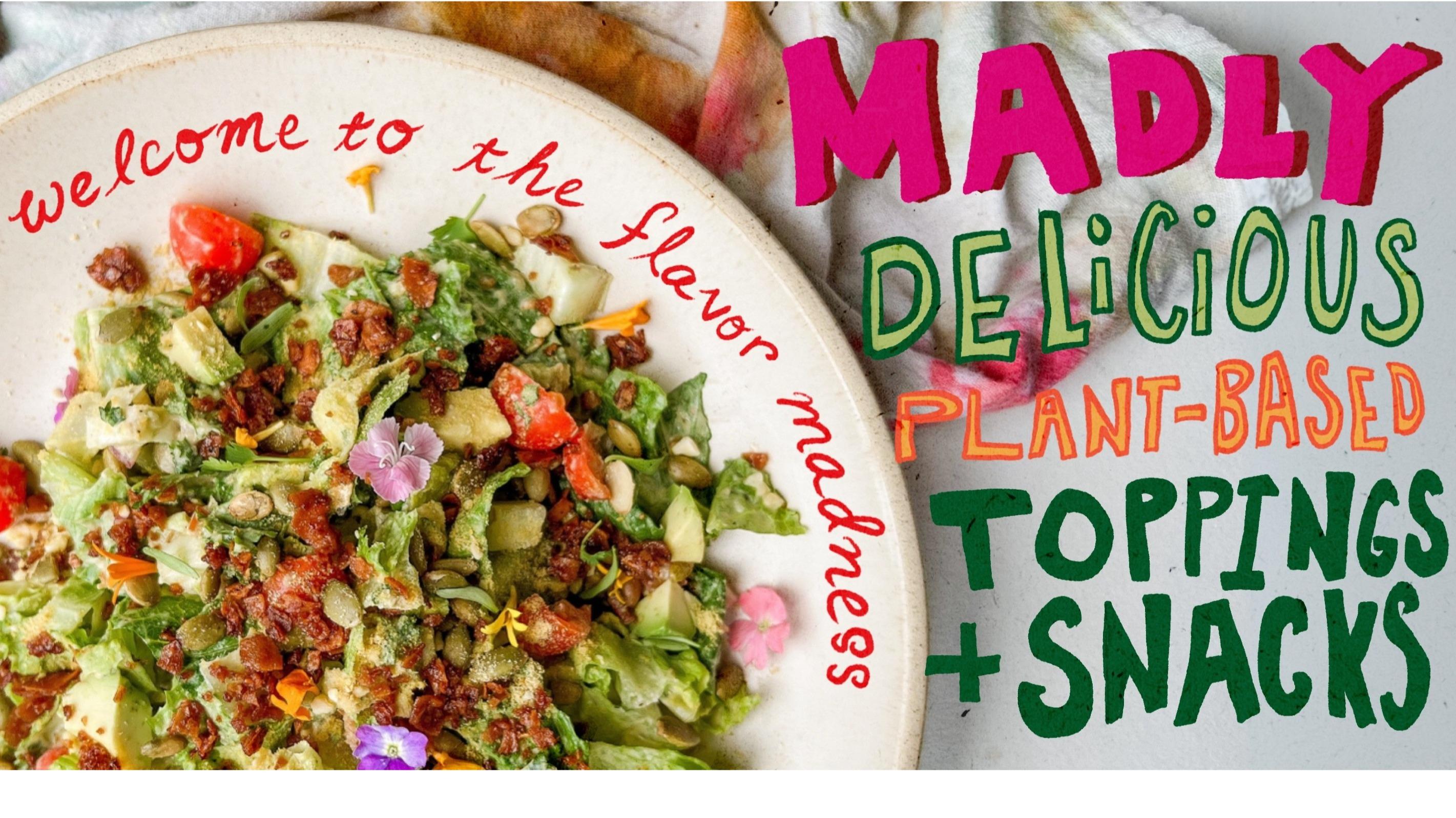 At Madly Hadley, we make plant-based toppings that actually taste amazing. Founded by a female chef, our lineup includes crispy coconut-based Plant-Based Bacon Bits and rich, umami-packed Dairy-Free Parmesan made from cashews. Always gluten-free, soy-free, clean, and wildly versatile, our products transform bowls, salads, veggies, pasta and more with a boost of Madly delicious flavor.