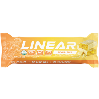 100% Organic Whey Protein — Linear Bars are the ONLY organic whey protein bar on the market, with whey sourced from farms free of synthetic pesticides, herbicides, or GMOs. Other organic bars are plant-based.
