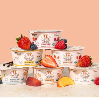 Painterland Sisters Organic Skyr Yogurt contains billions of probiotics (BB12), is high in protein and calcium, lactose-free and lower in sugar. Painterland Sisters is farmer-owned and certified Woman-Owned Business.