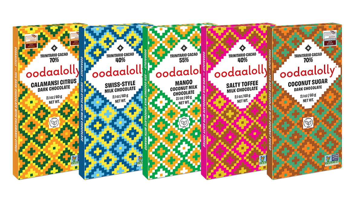 Based in Richmond, California Oodaalolly creates bold, joyous chocolate experiences by blending Swiss precision and tradition with the vibrant flavors and ingredients of the Philippines. We directly control every step of our process, sourcing our organic Trinitario cacao from co-op farmers in the Philippines and then crafting the chocolate with Swiss expertise. Oodaalolly is redefining what great chocolate can taste like and where it can come from.