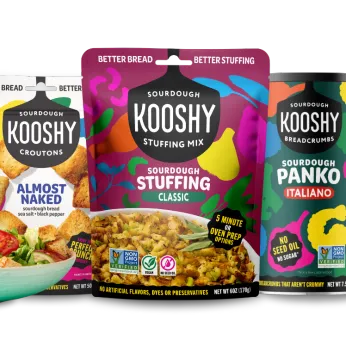 At Kooshy, we use the highest quality, non-GMO ingredients to make sourdough croutons, panko breadcrumbs & stuffing and have proven to help grow our categories by appealing to younger, premium BFY shoppers.