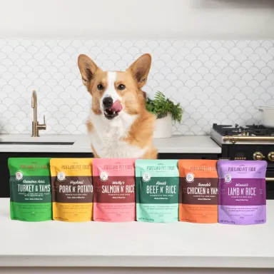 Dog and Cat Fresh Meal toppers in a shelf stable pouchPortland Pet Food Company
